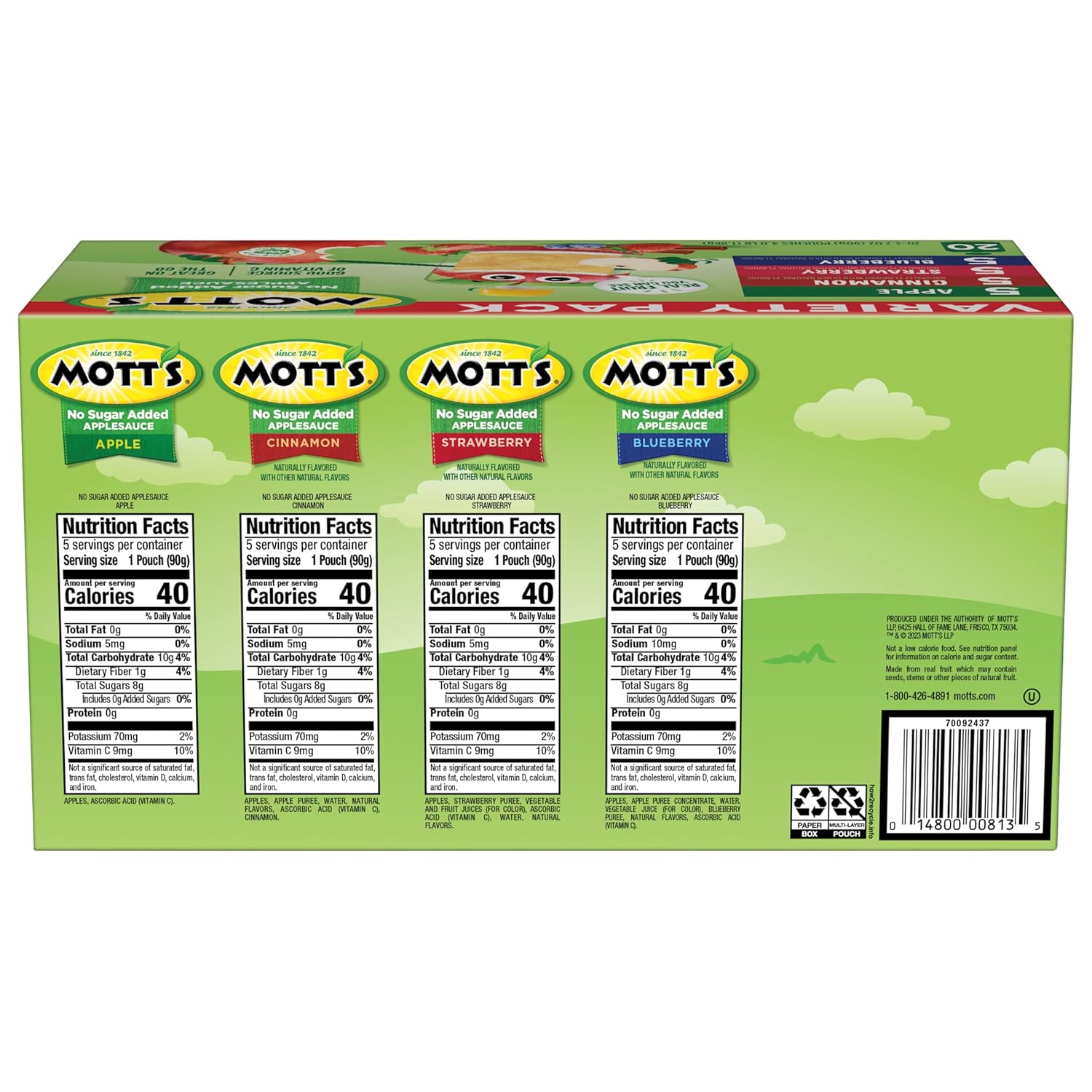 맛으로 포장됨: Mott의 사과 소스 버라이어티 팩 파우치는 짭짤한 사과, 달콤한 딸기, 강렬한 계피, 신랄한 블루베리와 같은 상쾌한 맛으로 제공됩니다. 그래서 당신은 당신의 입맛을 만족시킬 무언가를 찾을 것이라고 확신합니다.