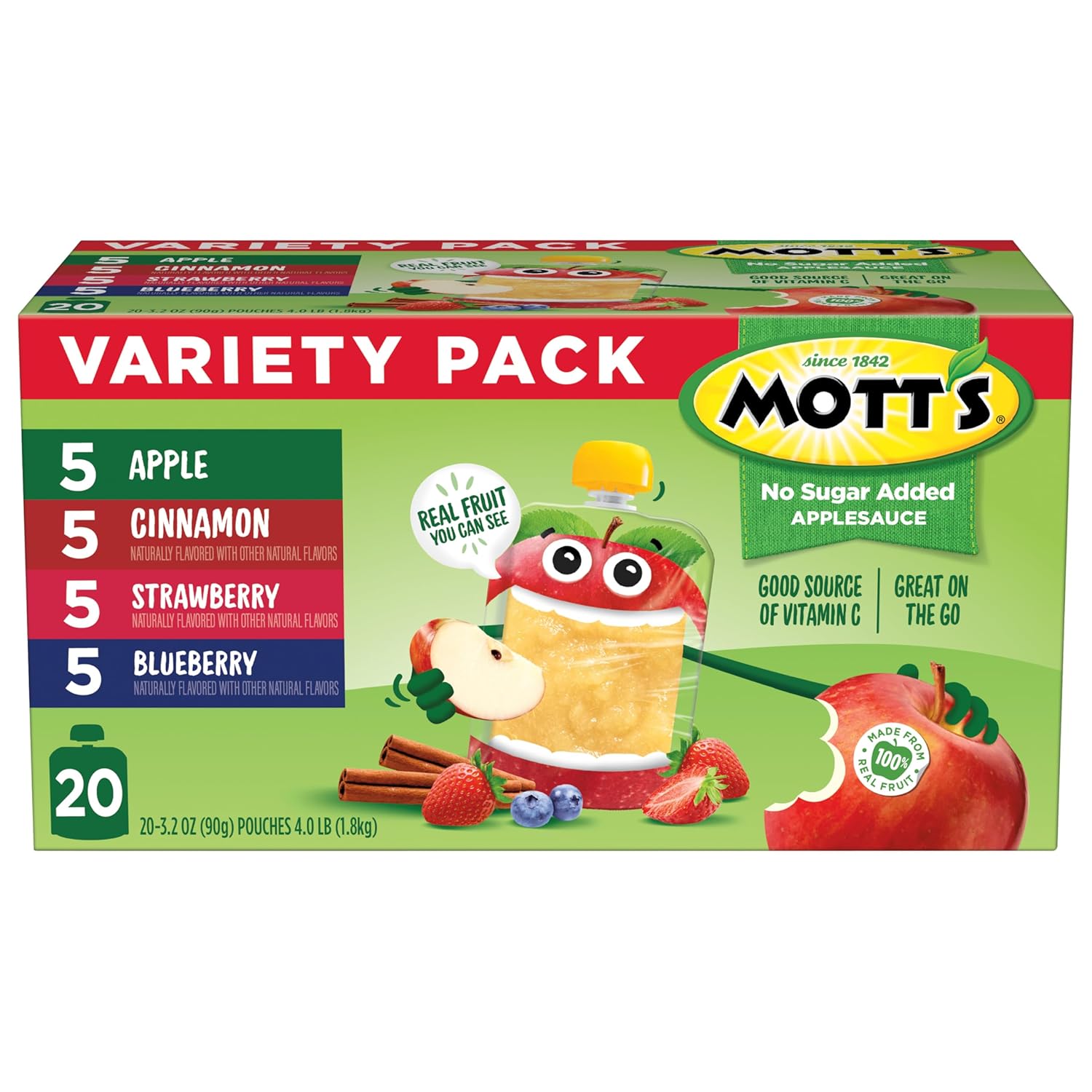 맛으로 포장됨: Mott의 사과 소스 버라이어티 팩 파우치는 짭짤한 사과, 달콤한 딸기, 강렬한 계피, 신랄한 블루베리와 같은 상쾌한 맛으로 제공됩니다. 그래서 당신은 당신의 입맛을 만족시킬 무언가를 찾을 것이라고 확신합니다.