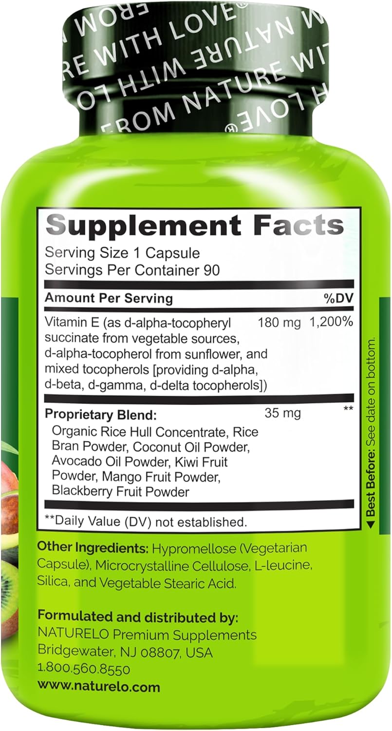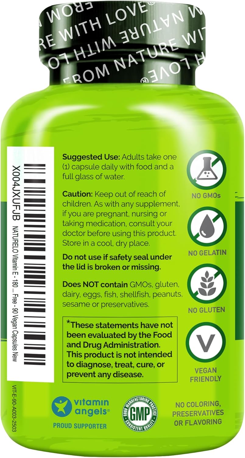 고성능: 비타민 E 180mg이 함유된 캡슐 3개월분. 매일 건조 형태의 비타민 E 캡슐 1개를 섭취하면 알파 토코페롤과 베타, 감마 및 델타 토코페롤이 함유된 혼합 토코페롤 180mg을 섭취할 수 있습니다.